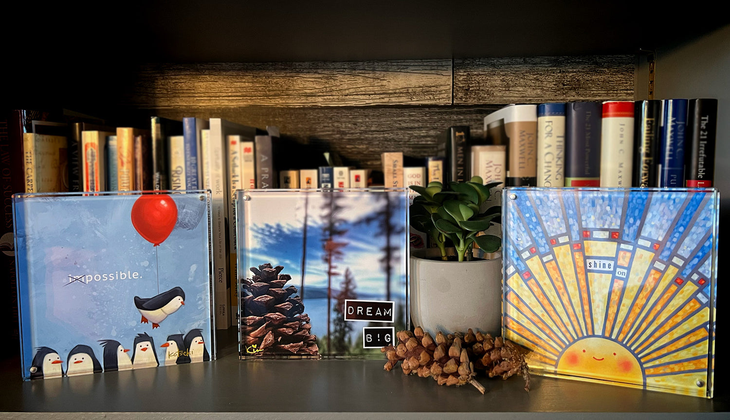 And this beautiful frame is a great way to display them! The 6x6-inch size allows for maximum flexibility: Display your current favorite on your desk or nightstand and refresh the look seasonally with new pieces. Combine several prints to create a breathtaking presence on a bookshelf in your home or office. Or pair a print with one of our classy acrylic block frames for a thoughtful recognition gift.