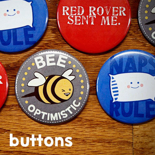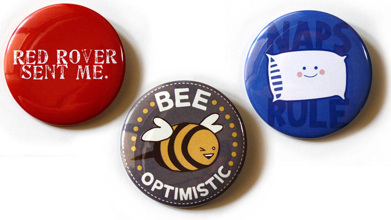 The buttons in this series are Bee Optimistic, Naps Rule and Red Rover.