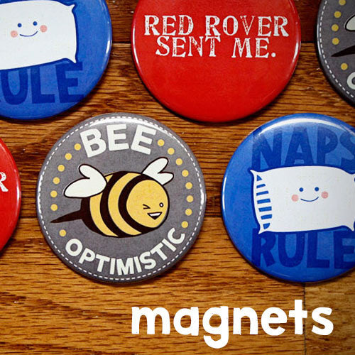 The magnets in this series are Bee Optimistic, Naps Rule and Red Rover.