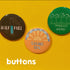 The buttons in this series are Half Full, Shine On, and Weeds or Wishes.