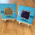Acrylic on 4″ x 4″ canvas. When you purchase this set, you get both hand-painted original canvases as well as two adjustable miniature display easels. Perfect for turning any desktop, ledge, bookshelf, or medicine cabinet into a mini art gallery!