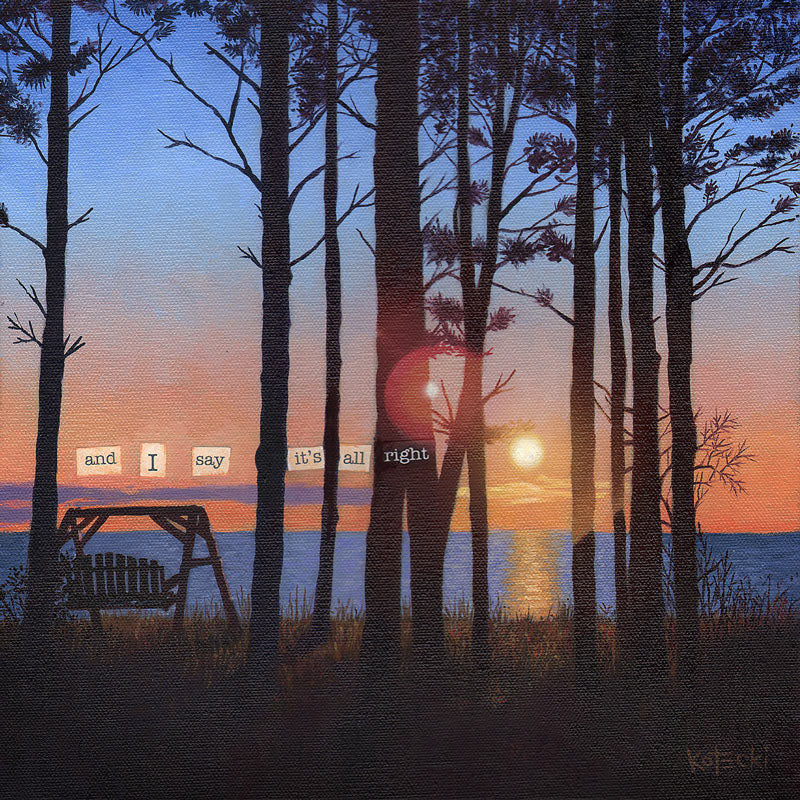 This comes from a series of nine original paintings by Jason Kotecki inspired by the Beatles song "Here Comes the Sun." It is available in two editions: